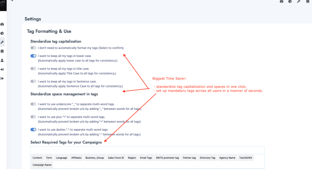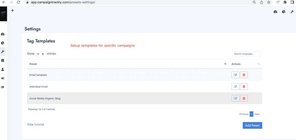 5. Tag Templates – Use a pre-set combination for every unique campaign to save time!